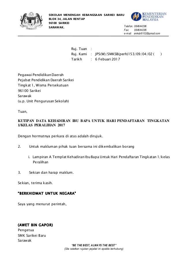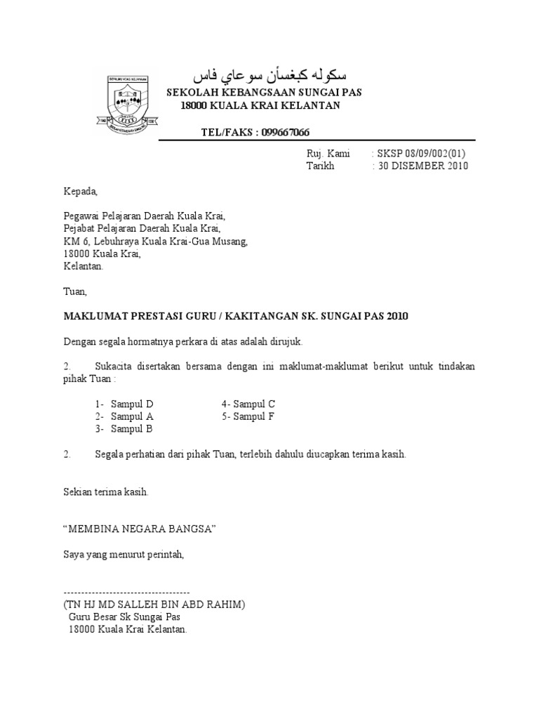 Pejabat Pendidikan Daerah Hulu Terengganu 21700 Kuala Berang Terengganu up. Contoh surat iringan sekolah wednesday november 24 2021 edit.